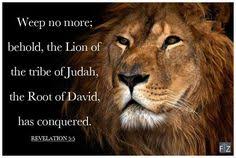 Revelation 5 vs. 5 – And one of the elders saith unto me, Weep not: behold, the Lion of the tribe of Judah, the Root of David, hath prevailed to open the book, and to loose the seven seals thereof.